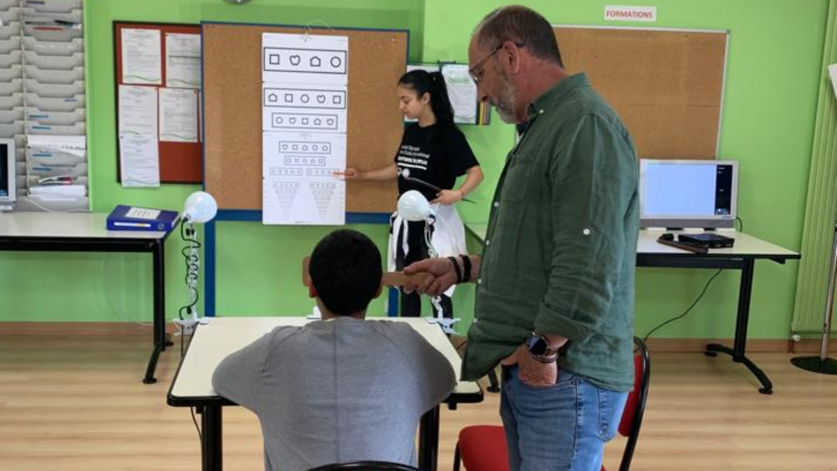 Sous les couleurs de Special Olympics France, l’équipe de Vision Solidarité - un optométriste, trois opticien·nes, trois étudiantes en licence d’optométrie et deux membres du Lions Club - a réalisé l’évaluation des capacités visuelles des jeunes de l’établissement. Des adultes du foyer et du centre d’activité de jour de La Longue Chauvière, situé à proximité, ont aussi bénéficié de ce dépistage. En effet, l’accès à la santé visuelle et à l’équipement optique reste une réelle problématique pour les personnes vivant avec un handicap mental. Si les moins de seize ans n’ont pas trop de problèmes visuels non décelés, il n’en est pas de même pour les personnes vieillissantes pour lesquelles un suivi régulier s’impose (vision et pathologie).